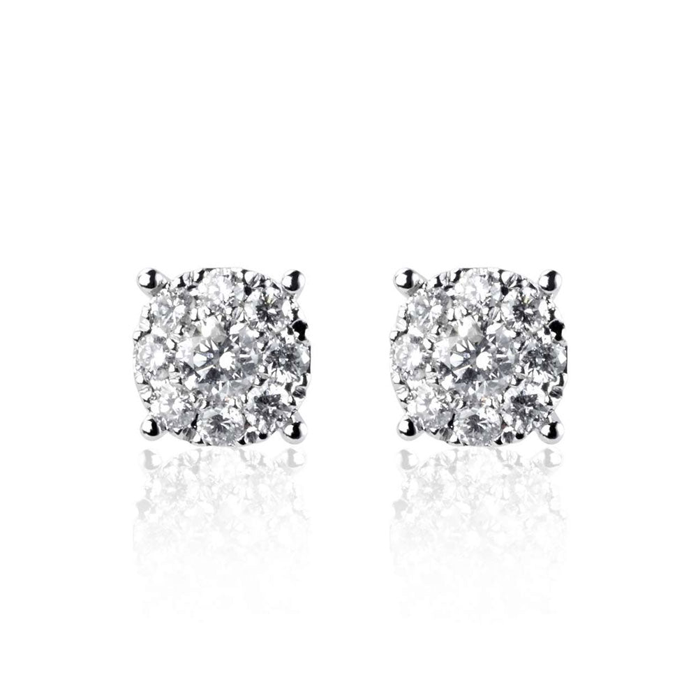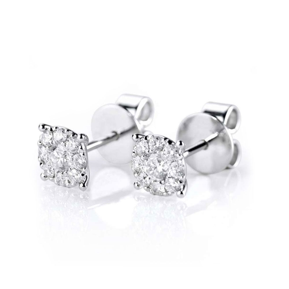 18ct white gold cluster earrings set with 9 round brilliant cut diamonds are a must for any jewellery collection. These stunning earrings are G in colour, VS in clarity and have a total carat weight of 0.24ct.
