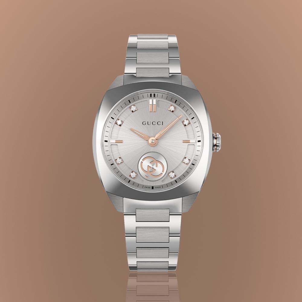 Gucci 25H 30mm White Brass Dial Stainless Steel Diamond Ladies Watch YA163503