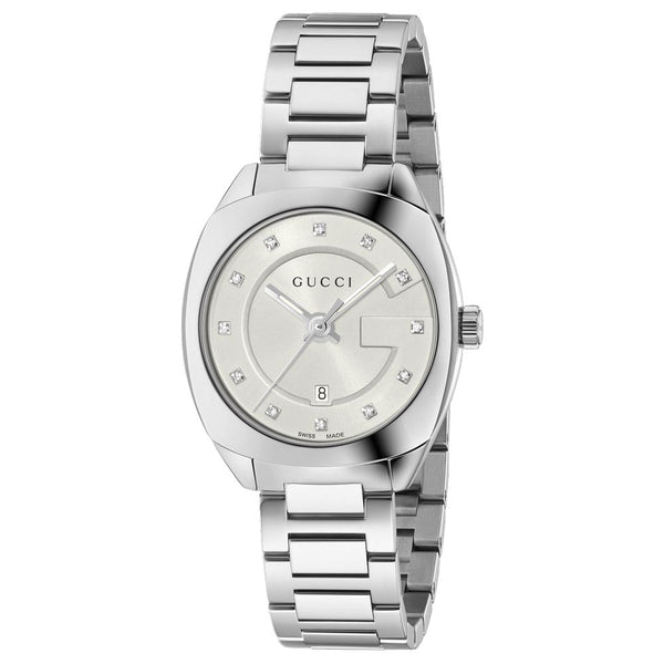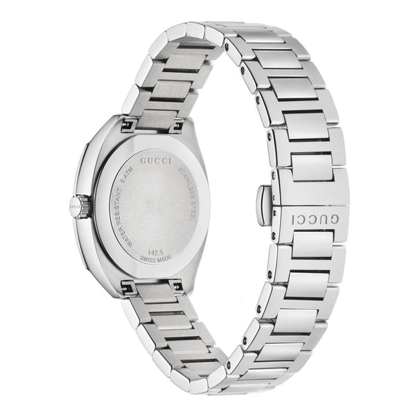 Featuring a geometric design with a 1970s influence, the Gucci GG2570 collection has the versatile ability to offer a sporty feel with a fashionable look. This robust collection provides a series of designs perfect for both men and women, and house high precision, Swiss-made quartz movements. A cool characteristic of this collection is the hidden G on the dial of each timepiece – a secretive yet bold statement from the House.