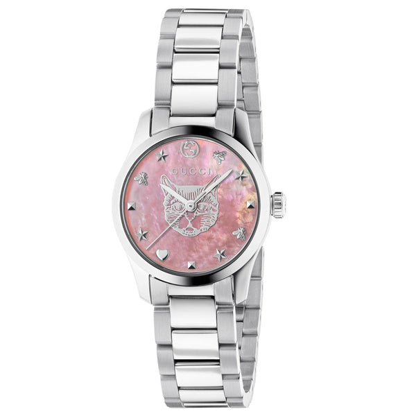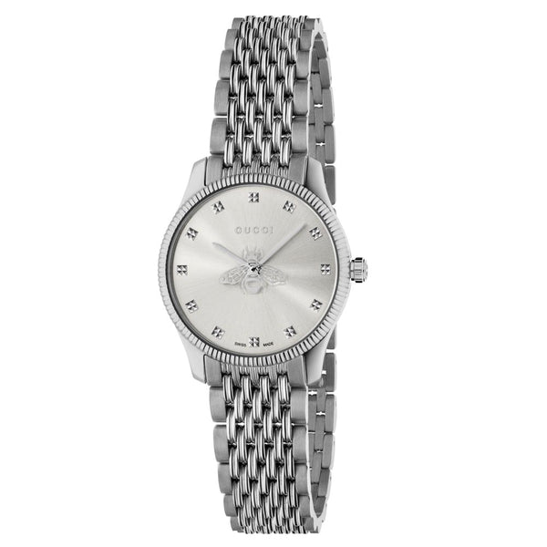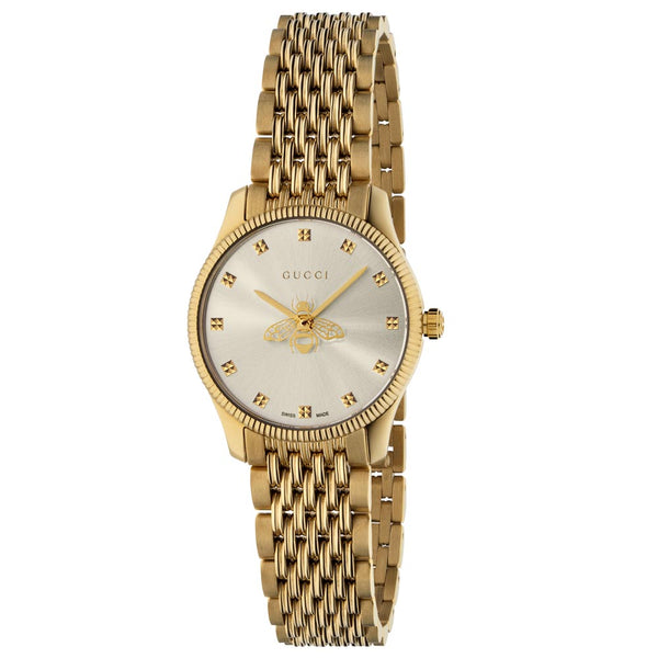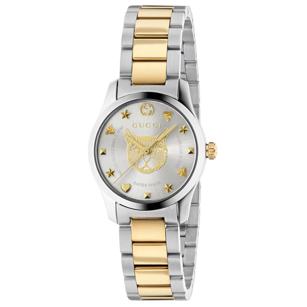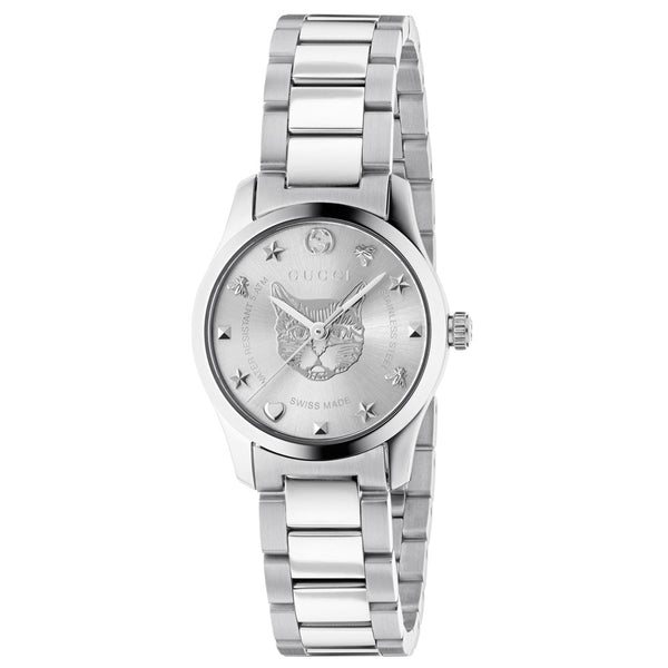 Are you a fashion-conscious woman with an appreciation for quality Italian style and  design, and impressive watchmaking technology? If your answer is yes, you have come to  the right place! Delve into the world of Gucci fashion watches that features recognisable  codes of the House, including the fierce feline head, buzzing bees, hopeful hearts,  sparkling stars, and more. Whether you prefer simple sterling silver or glamorous gold  PVD, we guarantee that you will find a Gucci timepiece to suit your style.