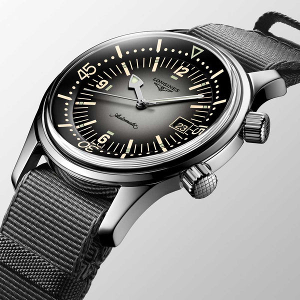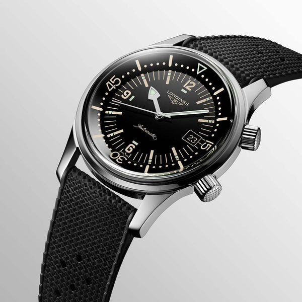 Launched in 2007, the Longines Legend Diver collection is a re-issue of a diving watch dating back to the 1960s when marine exploration and diving by the armed forces, as well as sportsmen and women, was at its height. The watches have retained the original design with domed glass combined with the reliability of present-day watches. All timepieces within this collection are fitted with an exclusive calibre: L888 for men and L592 for women.