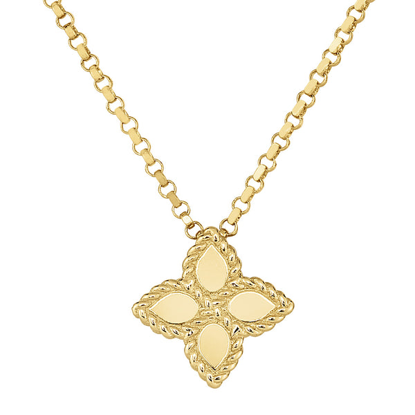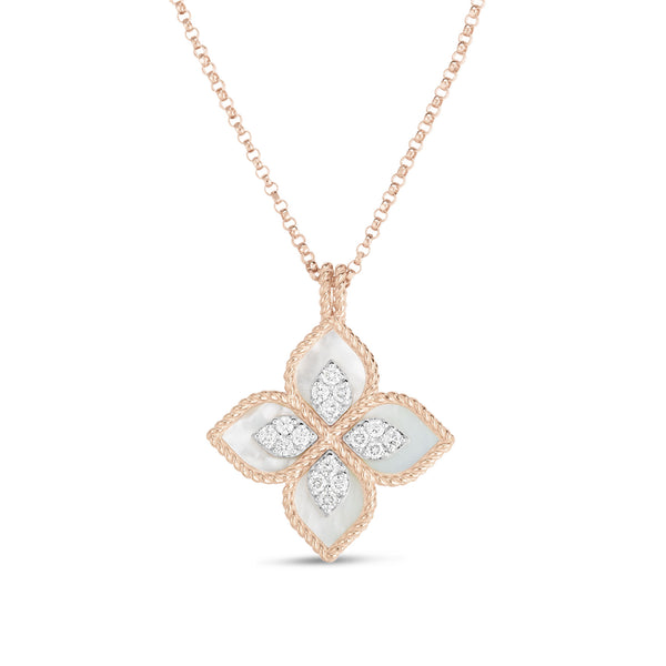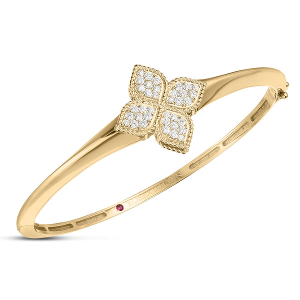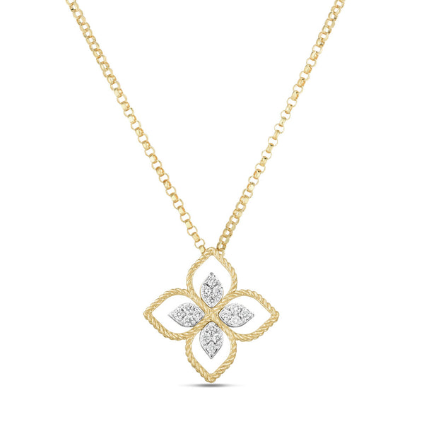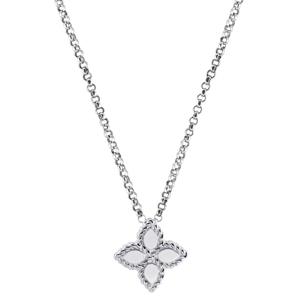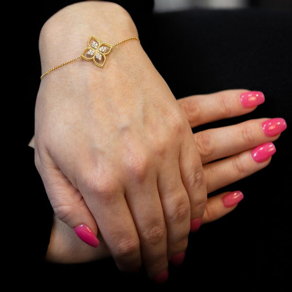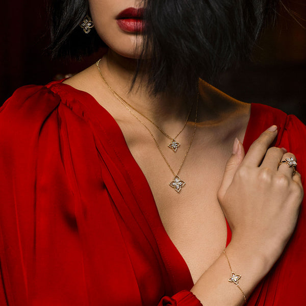 A big presence within the Roberto Coin family, the pretty Princess Flower collection is inspired by the floral decorations of the Venetian palaces. A stunning suite of jewellery,  including rings, bracelets, necklaces, and earrings that are offered in a variety of configurations. This floral collection represents the most romantic side of a woman’s  imagination and is the perfect way to brighten up your jewellery wardrobe.
