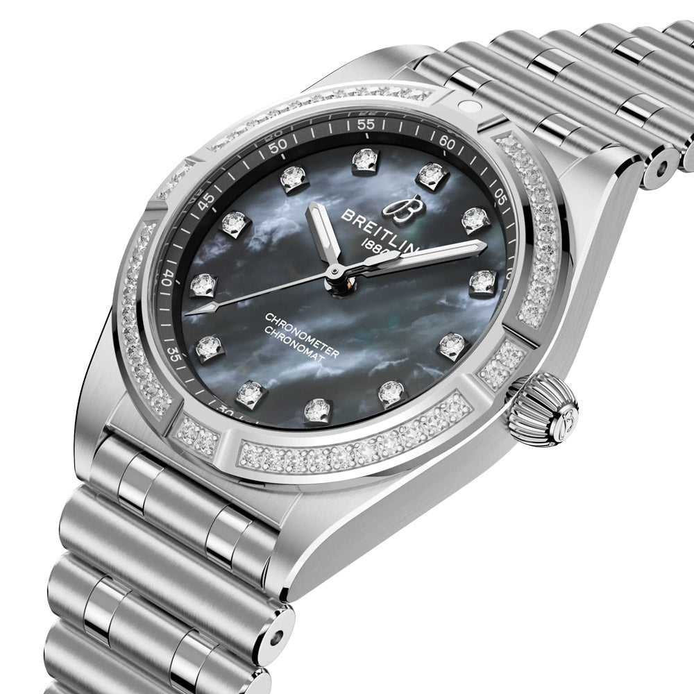 Versatile and timeless, the petite Breitling Chronomat 28 is the perfect sports watch for any occasion. These stunning timepieces offer more than just a sleek new size. With a variety of mother-of-pearl shades and traceable lab-grown diamonds, along with subtle refinements, they exude a sophisticated jewelry-like charm. Select your preferred case material and Rouleaux bracelet style, from stainless steel to mixed-metal duotone, all equipped with a comfortable butterfly folding clasp. The Chronomat 28 is powered by the Breitling Caliber 72, a COSC-certified SuperQuartz™ chronometer, for precise and reliable timekeeping.