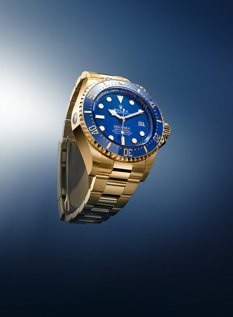 Precious and technical. Majestic and innovative. A bright watch for the dark abyss. Rolex is unveiling an original version of the Oyster Perpetual Rolex Deepsea, engineered to shine into the ocean depths.