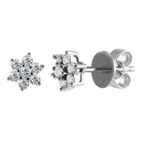 Uniquely formed from white gold and diamonds, these earring studs take the shape of a flower. The petals are studded round, brilliant cut diamonds circling a central claw set stone. Each of these catches the light beautifully to create a stunning effect across their faceted surface. The diamonds are held together by lustrous, 18ct white gold – chosen for its complementary appeal and exquisite finish. The earrings come to you from the heart of Robert Gatward’s premium collection, which has been lovingly put together to delight and inspire. These delicate earrings are a lovely, eye-catching accent and a constant reminder of all that is beautiful.