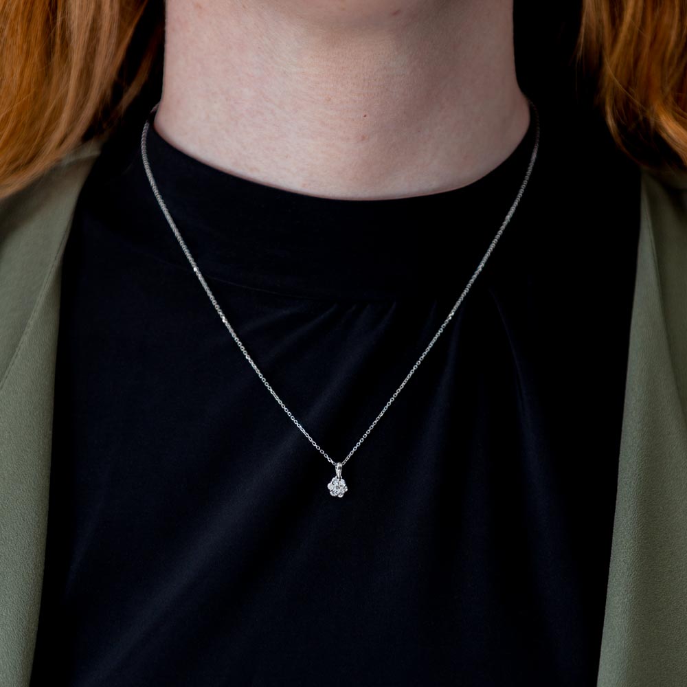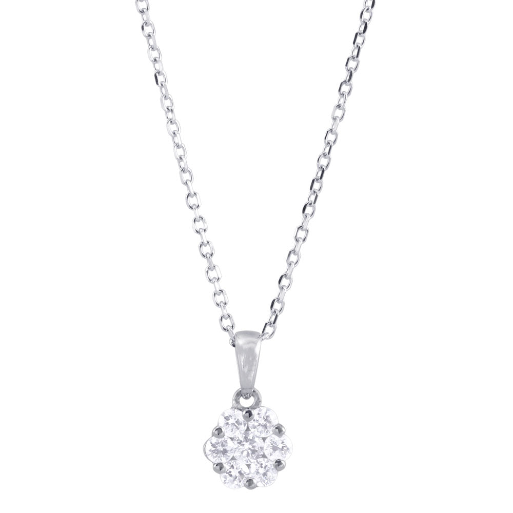 This beautiful Diamond necklace is exquisitely crafted in 18ct White Gold and adorns 7 dazzling round brilliant cut Diamonds with a total carat weight of 0.25ct. The stunning pendant hangs from a delicate 18 inch 18ct White Gold chain.