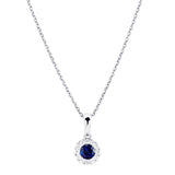 This stunning pendant has been beautifully crafted in 18ct White Gold, and is set with a round brilliant cut 0.33ct Sapphire, and round brilliant cut Diamonds with a total carat weight 0.14ct.