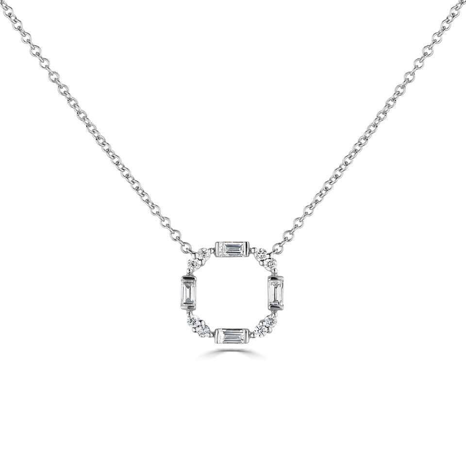 18ct White Gold 0.36ct Baguette And Round Brilliant Cut Diamond Circle Necklace