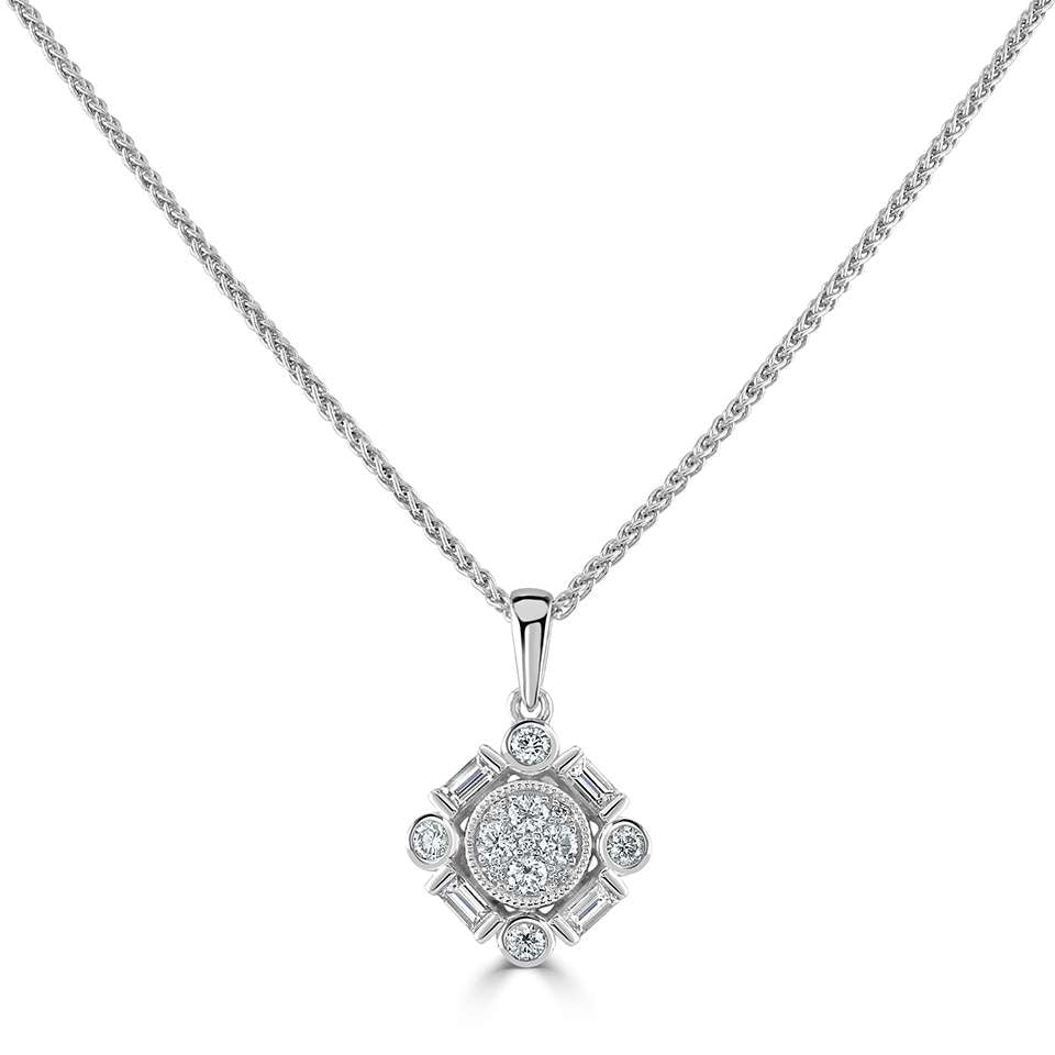 18ct White Gold 0.36ct Baguette and Round Brilliant Cut Diamond Pendant