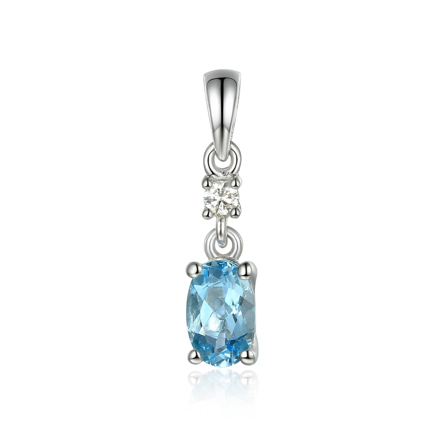 This stunning 18ct white gold necklace is adorned with a striking 0.41ct oval cut aquamarine. Dazzling above the aquamarine is a 0.03ct round brilliant cut diamond which adds a touch of sparkle and compliments the blue hue perfectly.