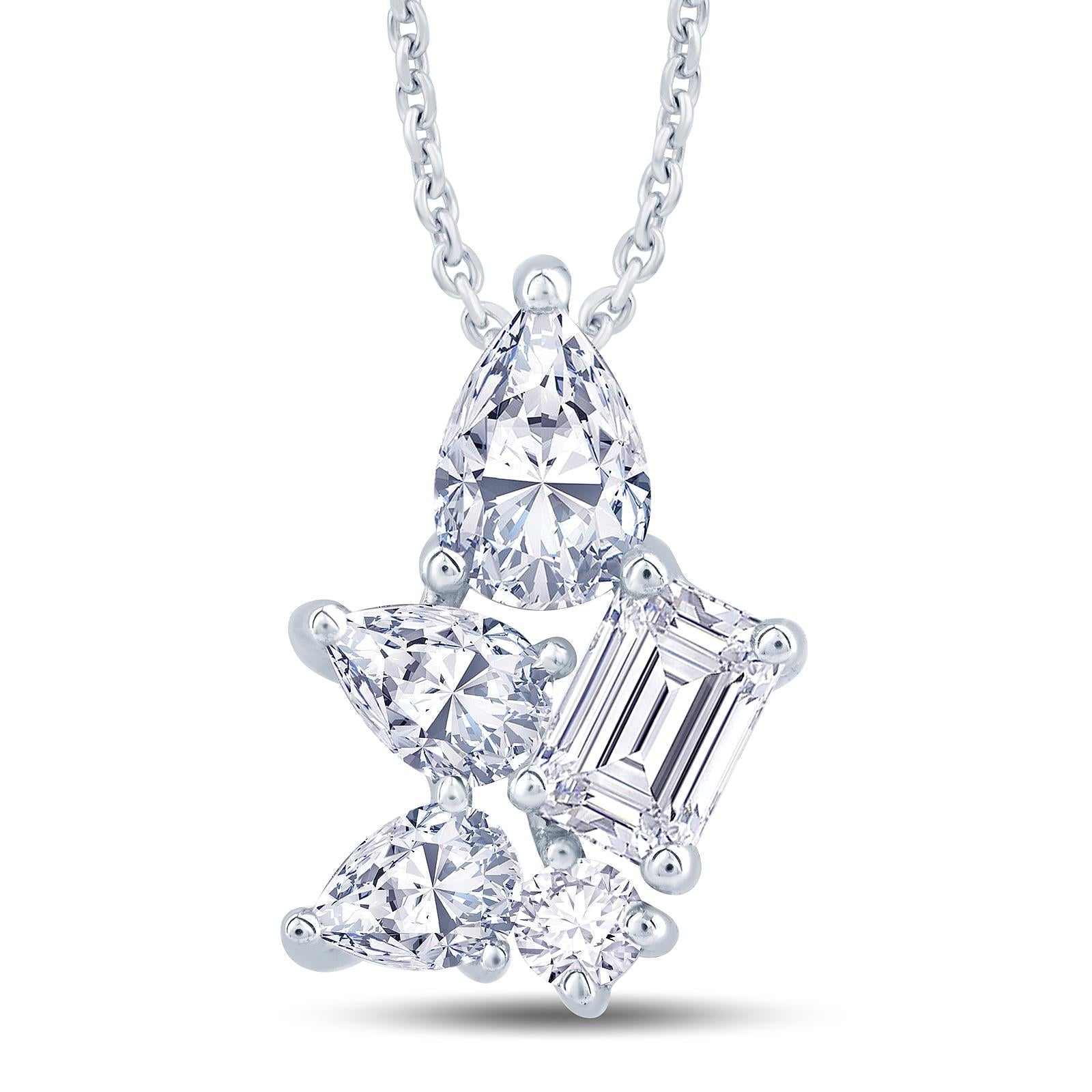 This gorgeous diamond necklace is beautifully crafted in 18ct white gold, and adorns dazzling pear, emerald and round brilliant cut diamonds, which take on a modern twist of a classic cluster. The total diamond carat weight of this beautiful necklace is 0.50ct.
