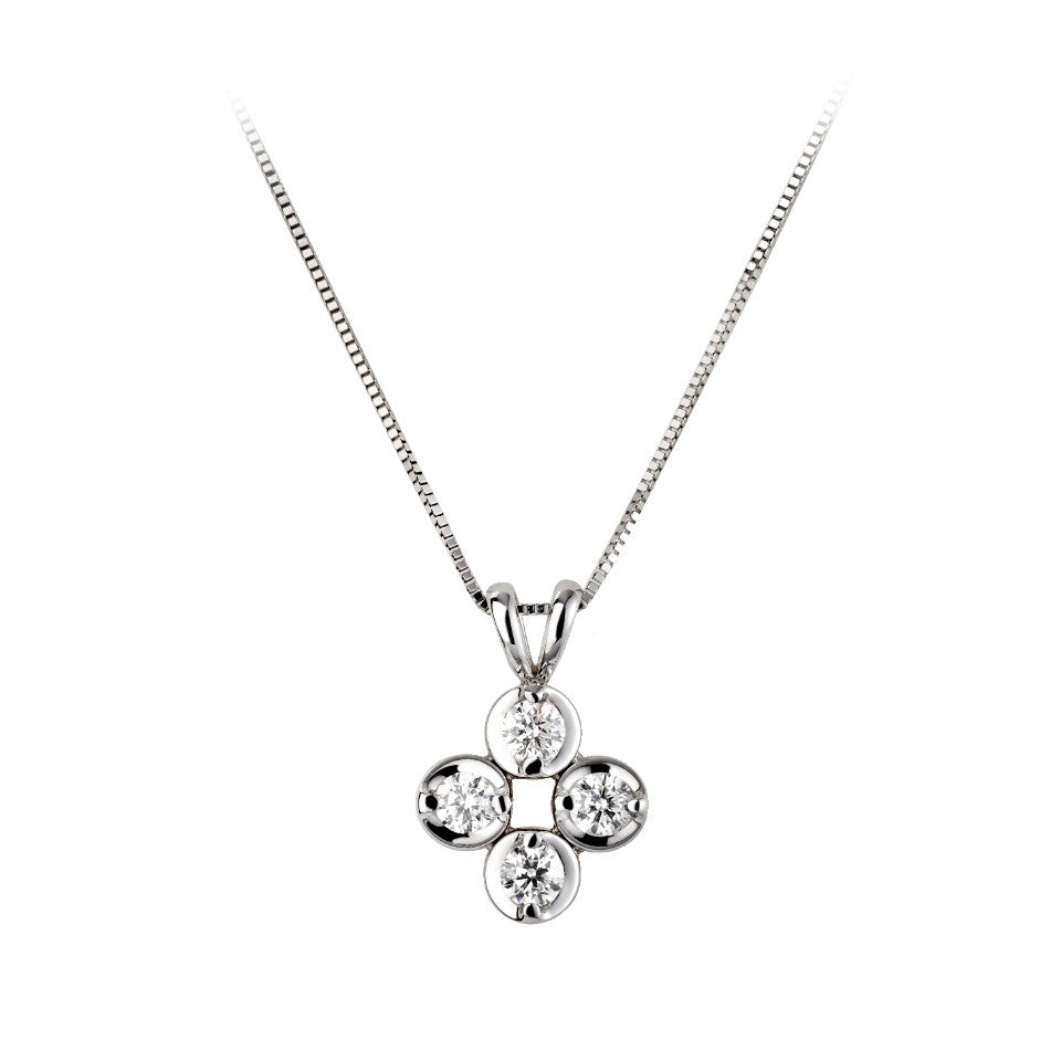 This gorgeous Diamond pendant is exquisitely handcrafted in 18ct White Gold by highly skilled UK jewellers. Securely held in a protective bezel setting, are four dazzling round brilliant cut Diamonds with an impressive total carat weight of 0.52ct, G in colour, SI clarity. This pendant would look fabulous suspended from an 18ct White Gold and teamed with matching Diamond earrings.