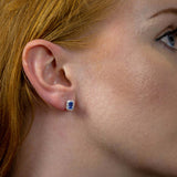 0.65ct stunning blue sapphire earrings, surrounded by 0.25ct diamonds beautifully crafted in 18ct white gold. Elegant and feminine, perfect for both day and evening wear. Can be worn with a matching sapphire pendant or as an individual striking piece.
