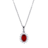 This stunning oval cut Ruby and dazzling diamond cluster necklace is the perfect gift for your special someone. The luxurious oval Ruby totals 0.78ct, and is surrounded by bright round brilliant diamonds totalling 0.14ct and are set in a cluster style in 18ct White Gold.