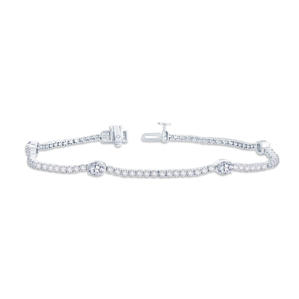 18ct White Gold 3.00ct Round Brilliant And Oval Cut Diamond Line Bracelet