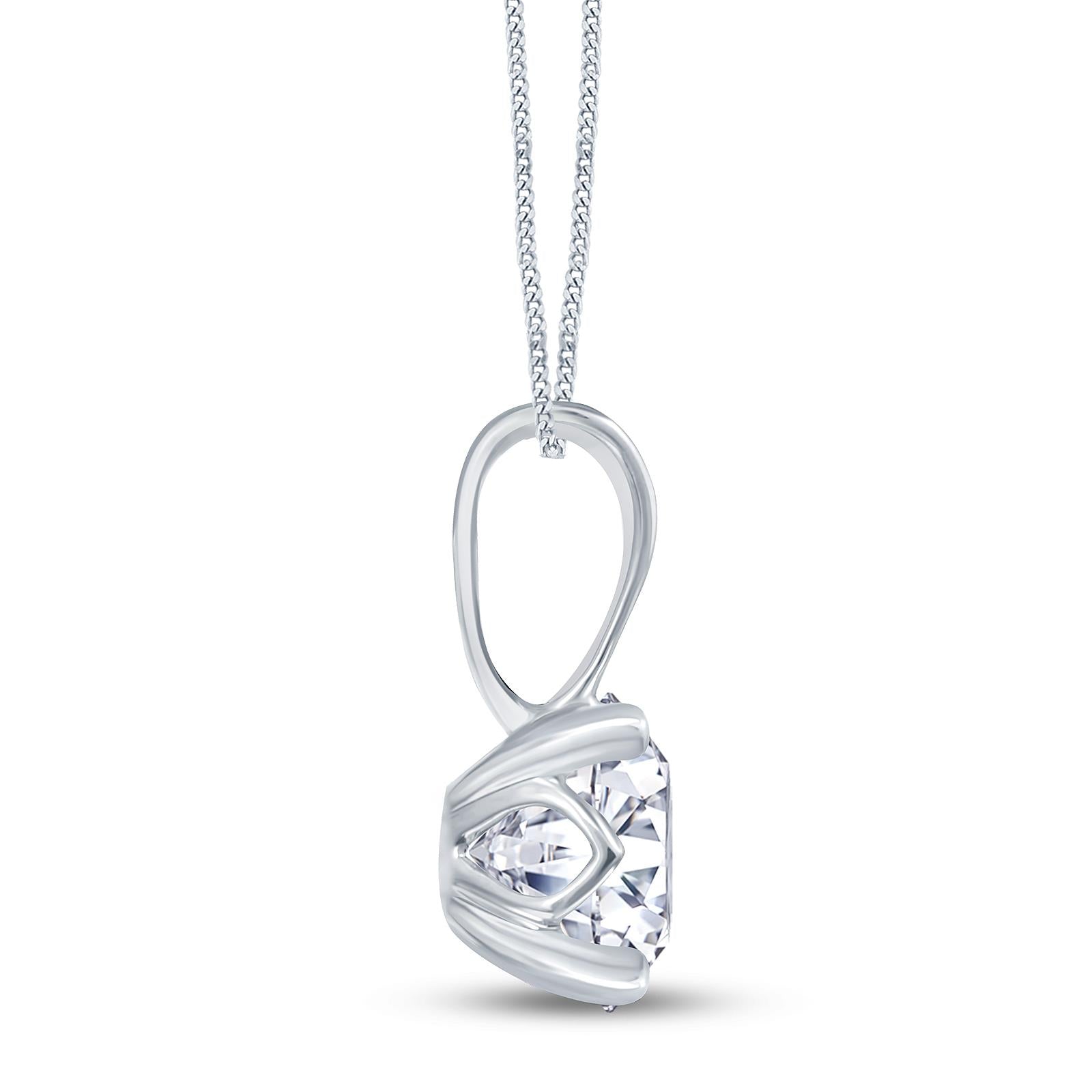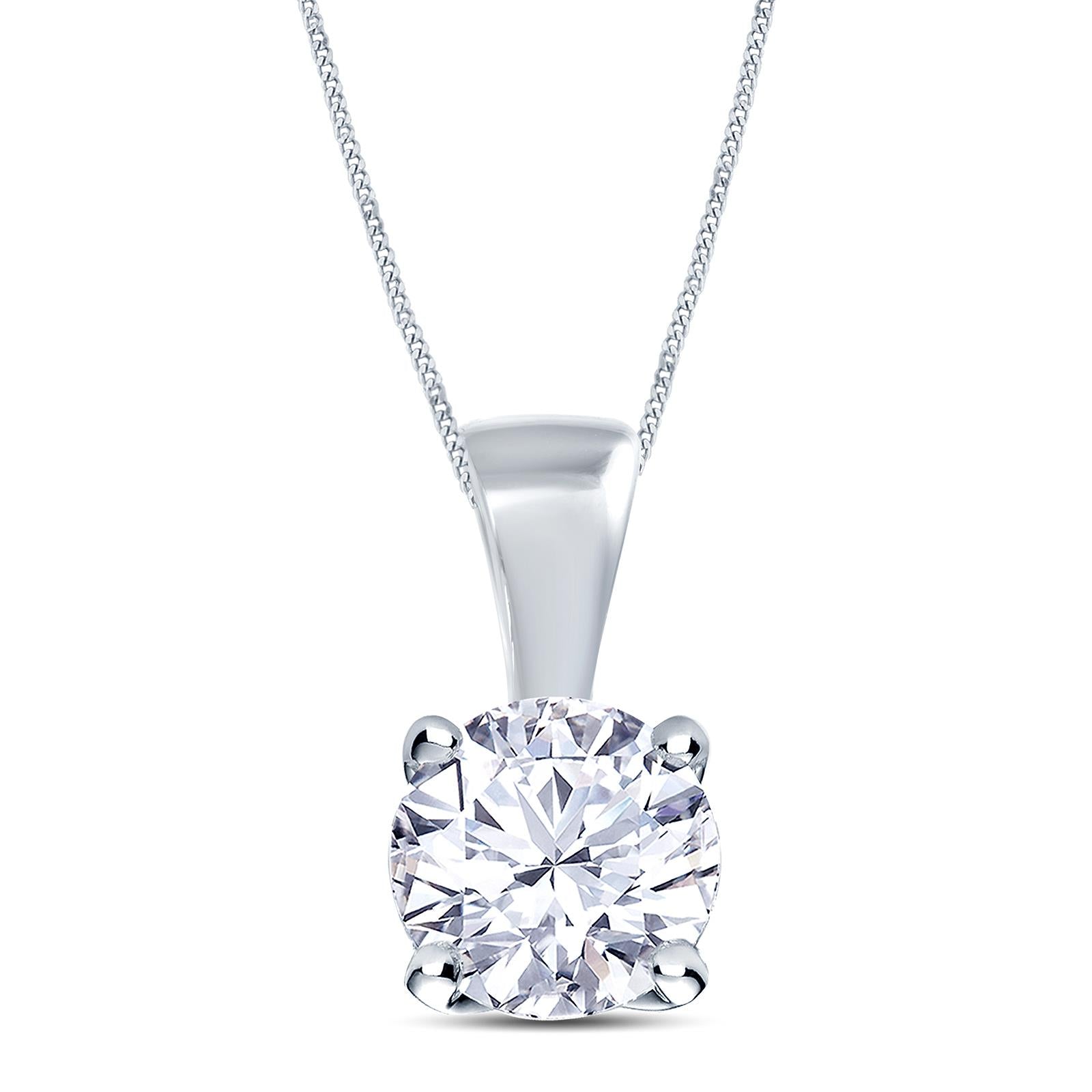 Secured into a simple four claw filigree setting and on an 18ct white gold chain, this beautiful necklace can be worn as an everyday accessory or for a special, glamorous occasion.