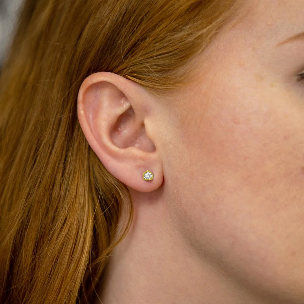 Similarly, an enchanting and mysterious appearance features within these graceful earrings; each diamond is gently cradled by a crescent of 18ct yellow gold acting as a shadow, hidden behind the earth.