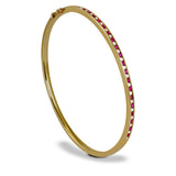 Beautifully composed in yellow gold, diamonds and rubies, fall in love with this bangle from Robert Gatward’s signature collection. Made to treasure, a sequence of round brilliant cut diamonds and rubies have been channel set in classic 9ct yellow gold. The effect of this pairing is exquisite, and the bangle has been finished to a lustrous, enchanting shine. The bangle’s slight oval shape and discrete hinge allows the bracelet to be worn in a way which showcases the feature stones for the perfect placement. Highly appealing, adorn your wrist with a piece of jewellery which you’ll cherish.