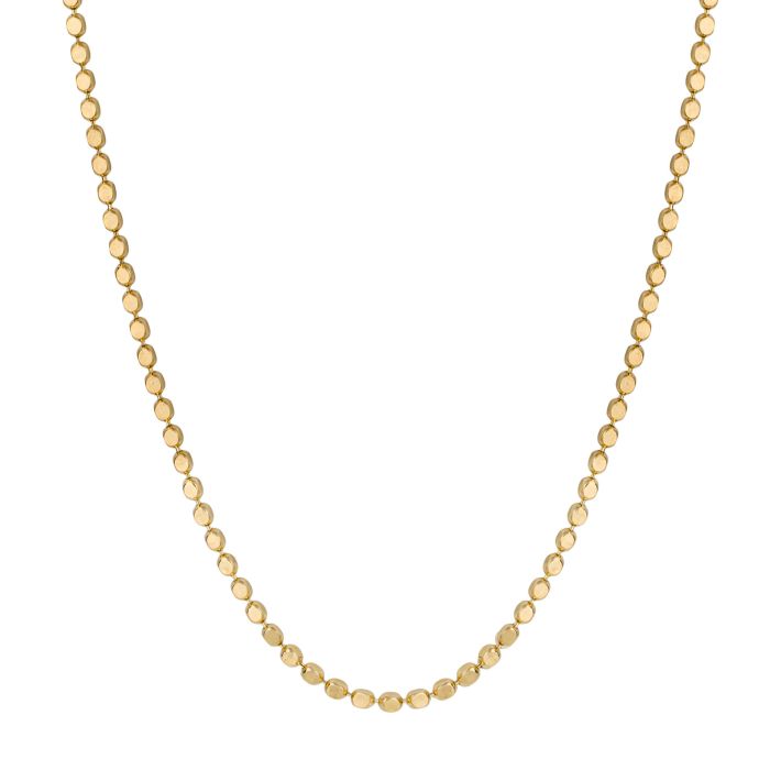 This stunning 9ct yellow gold diamond cut chain necklace features small discs which capture and reflect the light beautifully. Wear alone or stack with other necklaces to create a unique style.
