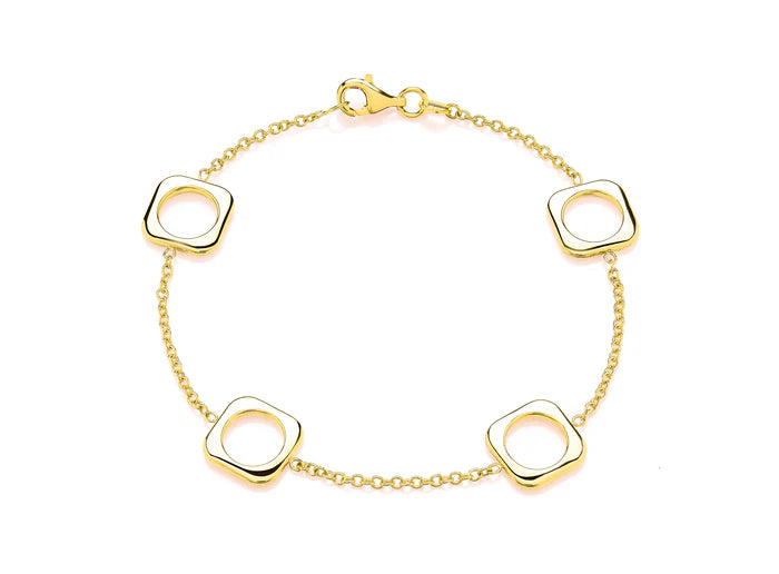This beautiful bracelet is crafted in gorgeous 9ct yellow gold. Stationed along the chain are open squares which adds a contemporary touch.