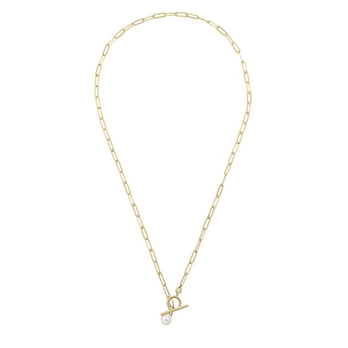 9ct Yellow Gold T-Bar Pearl Necklace GN393W