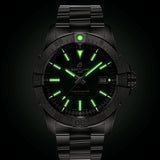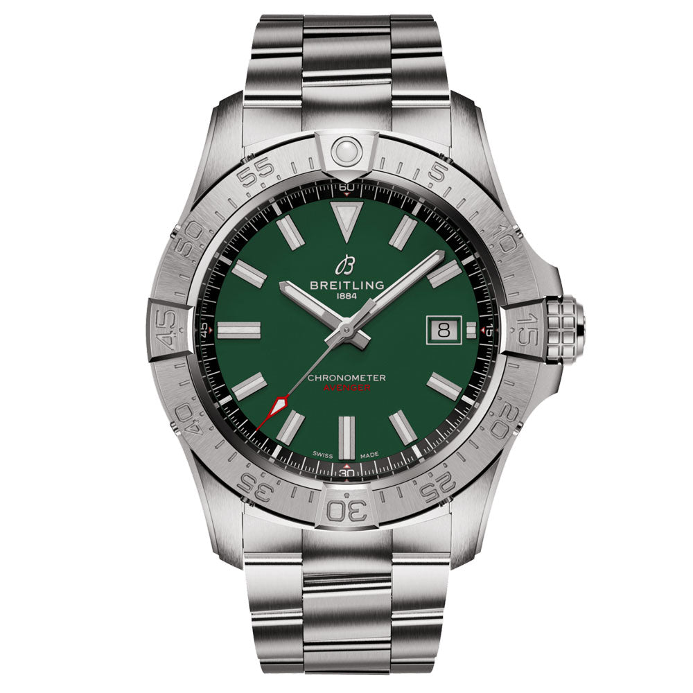 Aptly designed for jet pilots, the Avenger features bold design, superior durability and optimal performance. Combining modern aviation style with outstanding materials, such as stainless steel on the regular models and titanium and ceramic on the Night Mission version, the collection's dial colours are inspired by the military uniform palette. All stainless steel models come with a choice of military leather straps with folding-pin buckle or three-row stainless-steel bracelet with micro-adjustable clasp. For ceramic models, there is an option of a military leather strap with a titanium folding-pin buckle. Steadfast in its 300 m water resistance, easy-grip functionality, and corrosion-proof construction, the Avenger is the perfect choice for both professionals and recreational adventurers.