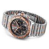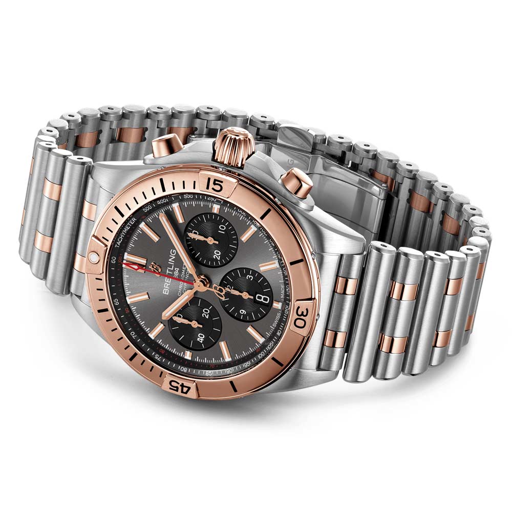 Crafted from intricate materials like stainless steel and 18ct rose gold, the Chronomat boasts a 42mm case and the now-iconic bezel with four rider tabs. Finishing touches include a selection of black, blue, silver and copper dials, the renowned "Rouleaux" bracelet and the Breitling Calibre 01, a COSC-certified chronometer.