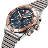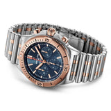 Boasting a range of stainless steel and 18ct rose gold materials, the Chronomat proudly displays its 42 mm case and signature “Rouleaux” bracelet alongside its iconic four rider tabs bezel. The timepiece is complete with its selection of black, blue, silver and copper dials, as well as its COSC-certified Breitling Manufacture Calibre 01 chronometer.