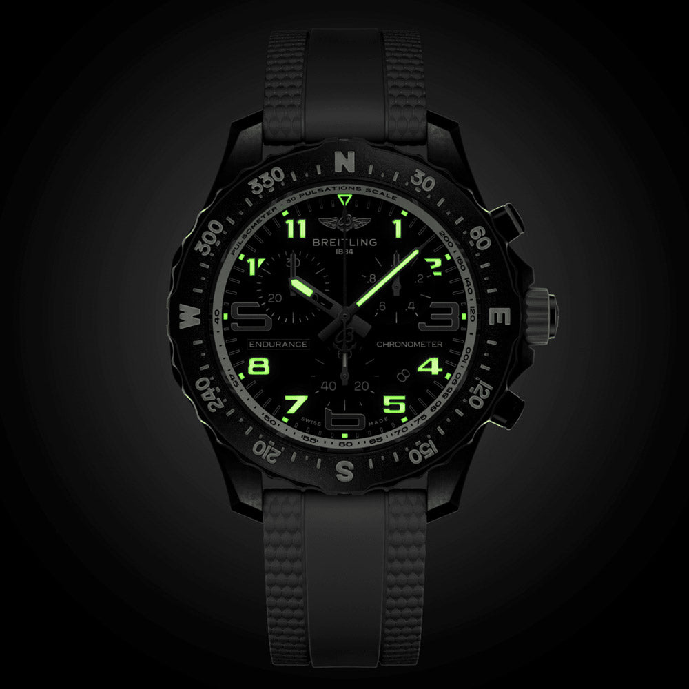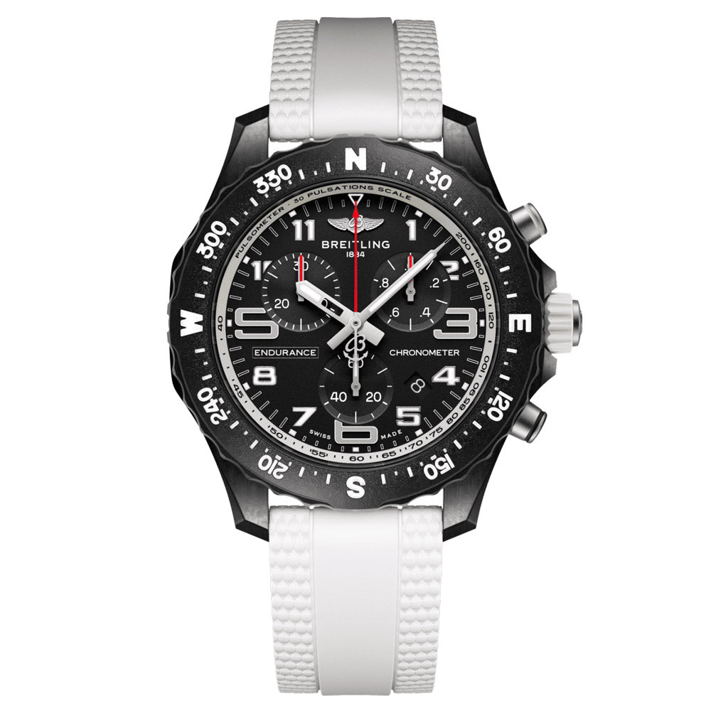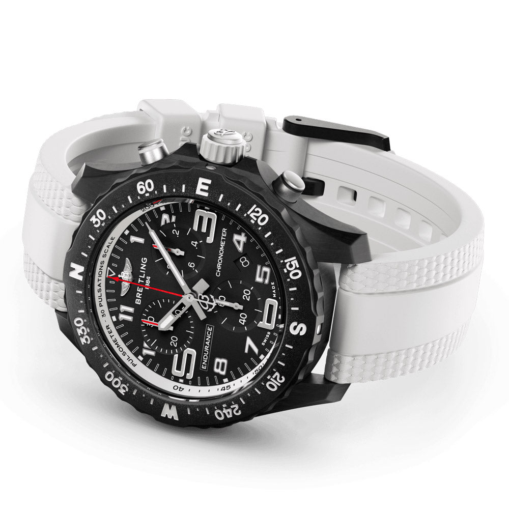 Crafted specifically for Breitling, this timepiece boasts a 100% Swiss-made material. With available sizes of 44 mm or 38 mm, the Endurance Pro caters to athletes with an array of vibrant dials and rubber straps, all secured by a Breitlight® tang-type buckle. Powering these choices are Breitling's Caliber 82 and 83, both COSC-certified SuperQuartz™ chronographs renowned for their unparalleled accuracy.