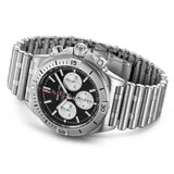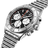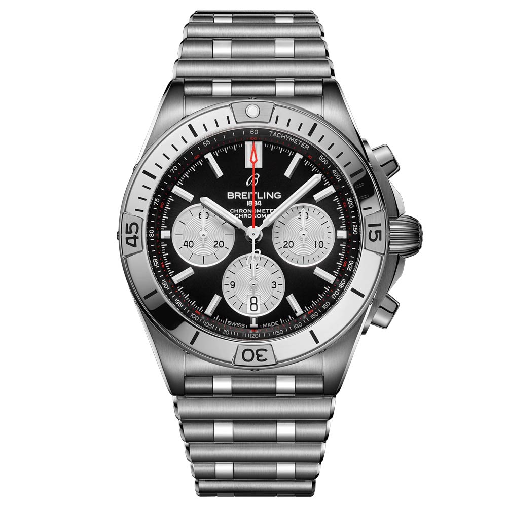 Breitling's highly versatile watch for any task. In 1984, when quartz watches were rapidly gaining popularity, Breitling placed a daring bet on the Chronomat, a mechanical timepiece of noble proportions. Developed with the collaboration of Italy's renowned aerial squadron Frecce Tricolori, the Chronomat was presented to mark Breitling's centenary and highlighted the brand's venerated mechanical chronographs. Showcasing a 42mm case and the esteemed bezel with four rider tabs, this watch is available in stainless steel, 18ct red gold and with multiple dials such as black, blue, silver and copper. It is paired with the iconic "Rouleaux" bracelet and powered by Breitling's own COSC-certified Calibre 01.