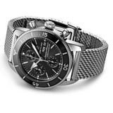 Blending a classic aesthetic with contemporary features, the Gents Superocean Heritage II Chronograph Watch combines 1950s-era Superocean design with modern details. This timepiece showcases a unique combination of triangle hands and a unidirectional bezel with a polished ceramic ring, encapsulating the spirit of the sea. Available in stainless steel and 18ct red gold, with a variety of colourful dials, it comes with either a mesh bracelet or a “mesh-styled” rubber strap with a folding buckle. Powered by Breitling Calibre 13-- a COSC-certified chronometer-- the Superocean Heritage is ideal for both land and water activities.