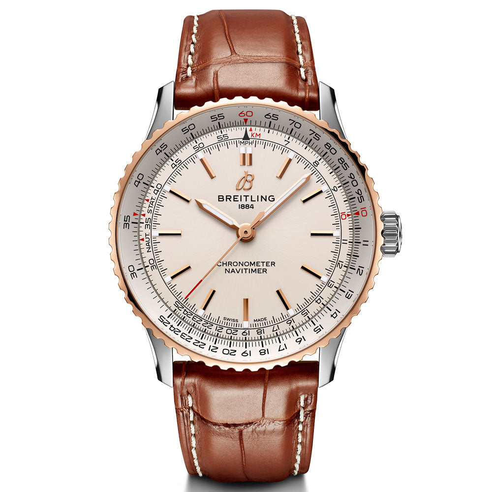 The Navitimer is widely recognized as one of the most iconic watches in history. It has earned a place on collectors' top lists, solidifying its reputation as a timeless timepiece. Originally designed for pilots in 1952, it has since evolved to hold a special significance for each individual who has owned it and taken it on their personal journey. The Navitimer Automatic and Automatic GMT 41 models embody the renowned design, excluding the chronograph function but maintaining a refined dial layout. The GMT features a central 24-hour scale, while the Automatic boasts a sleek face that puts the intricate slide rule at the forefront, streamlining the overall appearance.