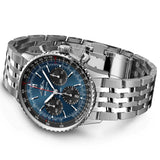 In 1952, Breitling revolutionized aviation watches with the Navitimer, a chronograph featuring a slide rule allowing for flight calculations. The unique design earned it official recognition from the AOPA, the world's largest pilots' association. Iconic aviators, celebrities and astronauts embraced the timepiece, and the modern version now features a flattening slide rule, brushed/polished metal elements, and varied blue, green and copper dials. At 12 o'clock, the AOPA wings evoke beloved memories, solidifying the Navitimer as a 70-year favourite of pilots and trendsetters.
