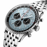 A symbol of air travel, the Breitling Navitimer has been revered for 70 years. In 1952, Willy Breitling's design, a wrist-worn chronograph with a circular slide rule, was adopted by the Aircraft Owners and Pilots Association (AOPA) as their official watch. From renowned pilots to legendary celebrities, the Navitimer held a prominent place on the wrists of many. The Navitimer B01 Chronograph 43mm Ice Blue Dial Automatic Gents Watch AB0138241C1A1 has been modernized with a sleeker profile, luxe metal accents, and versatile blue, green, and copper dials. Noted for its unmistakable style and utility, the AOPA wings are now back in their original position at 12 o'clock to honour its 70-year legacy.