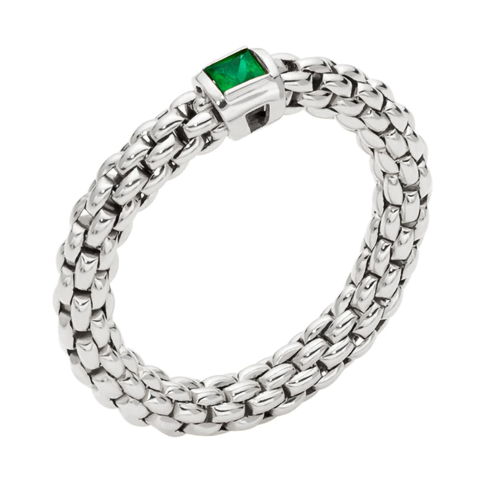 Part of the Souls collection, this stunning gold ring features the signature FOPE woven chain. Expertly crafted from luxurious 18ct white gold, and is embellished with a beautiful emerald.