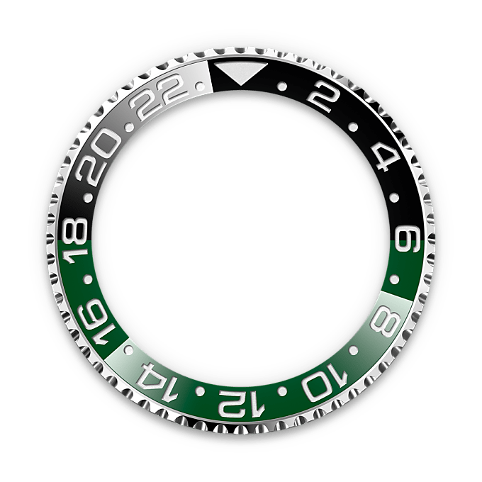 BezelBidirectional rotatable 24-hour graduated bezel. Two-colour green and black Cerachrom insert in ceramic, moulded numerals and graduations