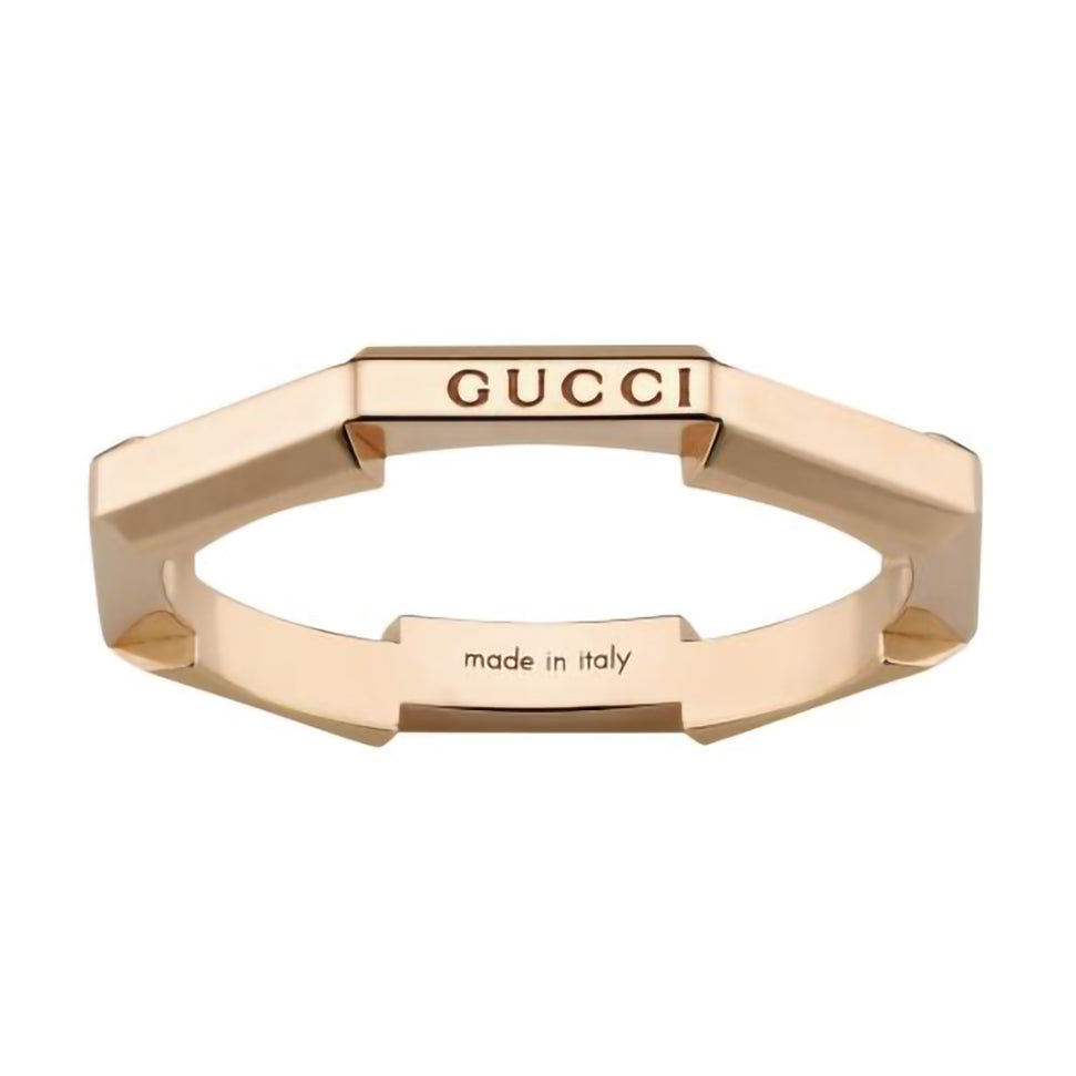This particular ring is crafted in 18ct rose gold and measures 3mm in width. Team with other items from the Gucci Link To Love collection to perfect your Gucci jewellery wardrobe!