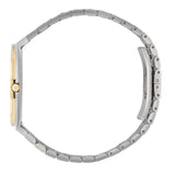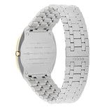 - 38mm stainless steel and 18ct yellow gold plated multi-layered case, golden brass dial with Interlocking G motif, five link stainless steel bracelet