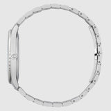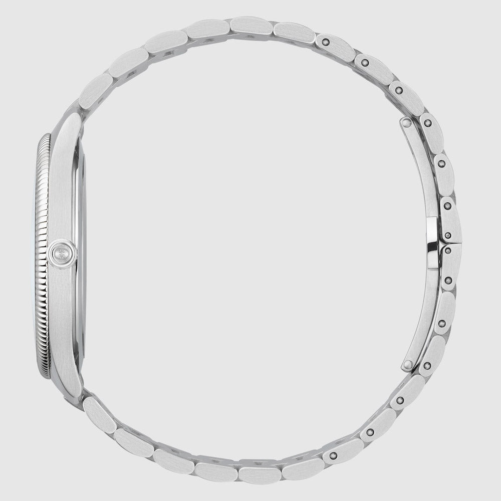 - 38mm stainless steel case, silver-toned dial with Interlocking G, date at 3 o' clock and stainless steel bracelet