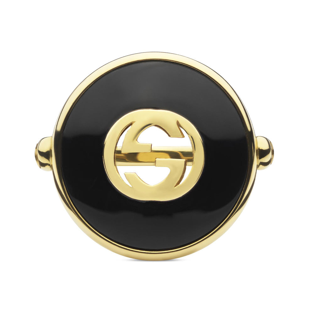 Gucci Interlocking 18ct Yellow Gold Black Onyx And Diamond Ring YBC786604001