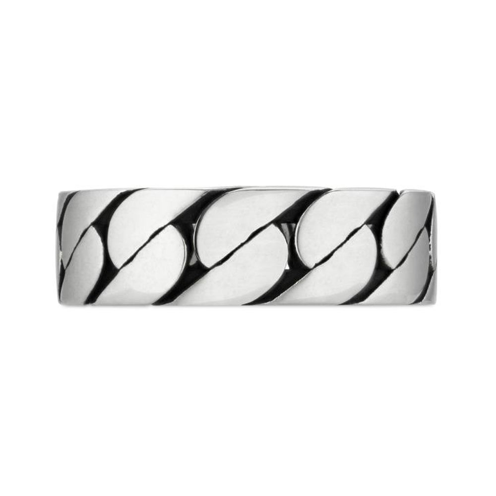 Expertly crafted from the finest quality 925 sterling silver with oxidised detailing, this Gucci Interlocking ring is a beautiful piece of craftsmanship for both Ladies and Gentlemen alike. Featuring the iconic interlocking G motif and 6mm in width, this ring is a bold statement piece and a must-have for your everyday jewellery wardrobe!