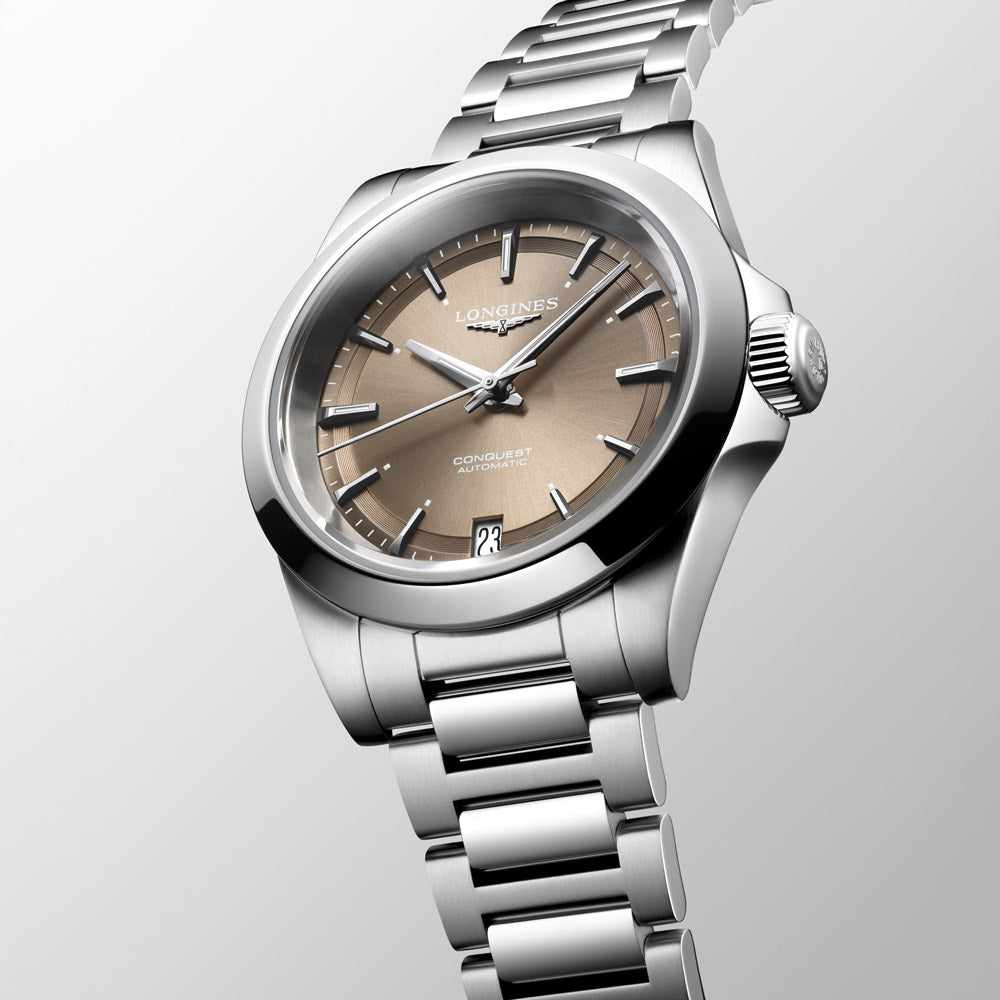 Since 1954, the Conquest line has symbolized the bold spirit of exploration of those who have ventured beyond their boundaries in search of new experiences. Featuring sophisticated technical components and elegant design, these watches remain true to the spirit of Conquest without compromising either their performance or style.