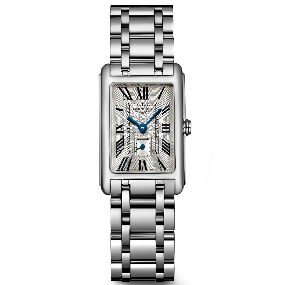 This classic ladies watch from the Longines Dolcevita Collection boasts a unique and sophisticated design. Its 20.5mm wide rectangular case stands out against the norm, featuring a beautiful cream dial adorned with bold blue hands and a separate second counter sub-dial. Powered by a reliable Swiss-made quartz (battery) movement, this timepiece is sure to remain timeless in both style and performance.