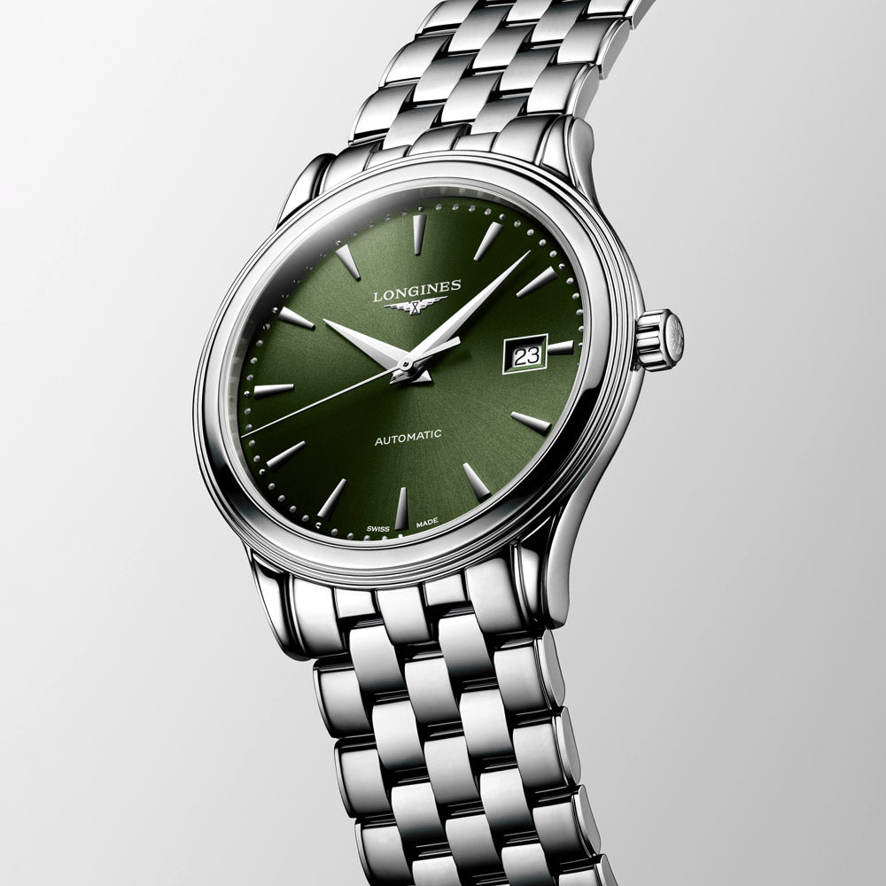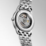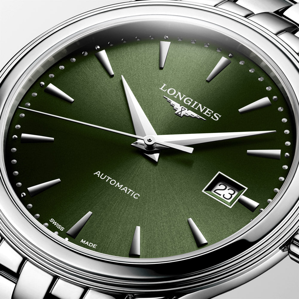 The Longines Flagship Gents watch boasts a stylish and iconic design, including a durable stainless steel bracelet and face, a scratch-resistant sapphire crystal glass with multiple layers of anti-reflective coating, and a 30-meter water-resistance rating for splash-proof protection. Its refined and handsome dial adds to its sophistication and understated appeal.