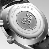 This chic Heritage Legend diver watch showcases classic design and modern watchmaking technology. It offers a variety of features for the discerning gentleman, including automatic movement so the luminous hands move effortlessly on the black dial and glow even in low light. It features scratch-resistant sapphire crystal glass with extra anti-protective coating, allowing it to endure extreme conditions and other sporting activities; and has water resistance up to 300 metres for deep-sea diving. A handsome and versatile timepiece, it is perfect for the gentleman who loves his sports and adventures.