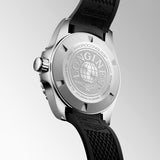 The HYDROCONQUEST collection is a renowned leader in sports watches. Fitted with an exclusive Longines GMT movement, users can track two time zones simultaneously. This caliber also features a silicon balance-spring and components that render it more than 10x more resistant to magnetic fields than the ISO 764 standard.