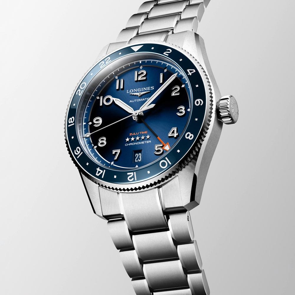 In 2022, Longines released the Spirit Zulu Time, ushering in a new chapter of precision instrument design. This model features multiple time zones, taking its cues from models worn by renowned pioneers. Its ergonomic 39mm case makes these timepiece as stylish as it is legendary.