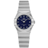 The classic OMEGA Constellation design is distinguished by its signature half-moons, "claws" and single-row bracelet. This 25mm stainless steel model features a diamond-studded bezel and a blue aventurine glass dial with diamond hour indices. Its components of 18ct white gold include the hands, OMEGA logo, Constellation star and diamond holders. Powering this piece is the OMEGA Calibre 4061, while the Constellation Observatory medallion decorates the caseback.