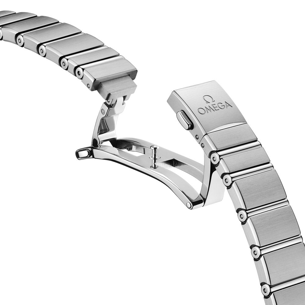 Since its debut in 1952, the OMEGA Constellation has drawn inspiration from the precise movements of the stars. This impressive timepiece takes that stellar theme one step further with a striking meteorite dial. Crafted from durable stainless steel, the 25 mm watch features the signature Constellation design elements, such as the polished claws, half-moon facets, and a diamond-studded bezel.