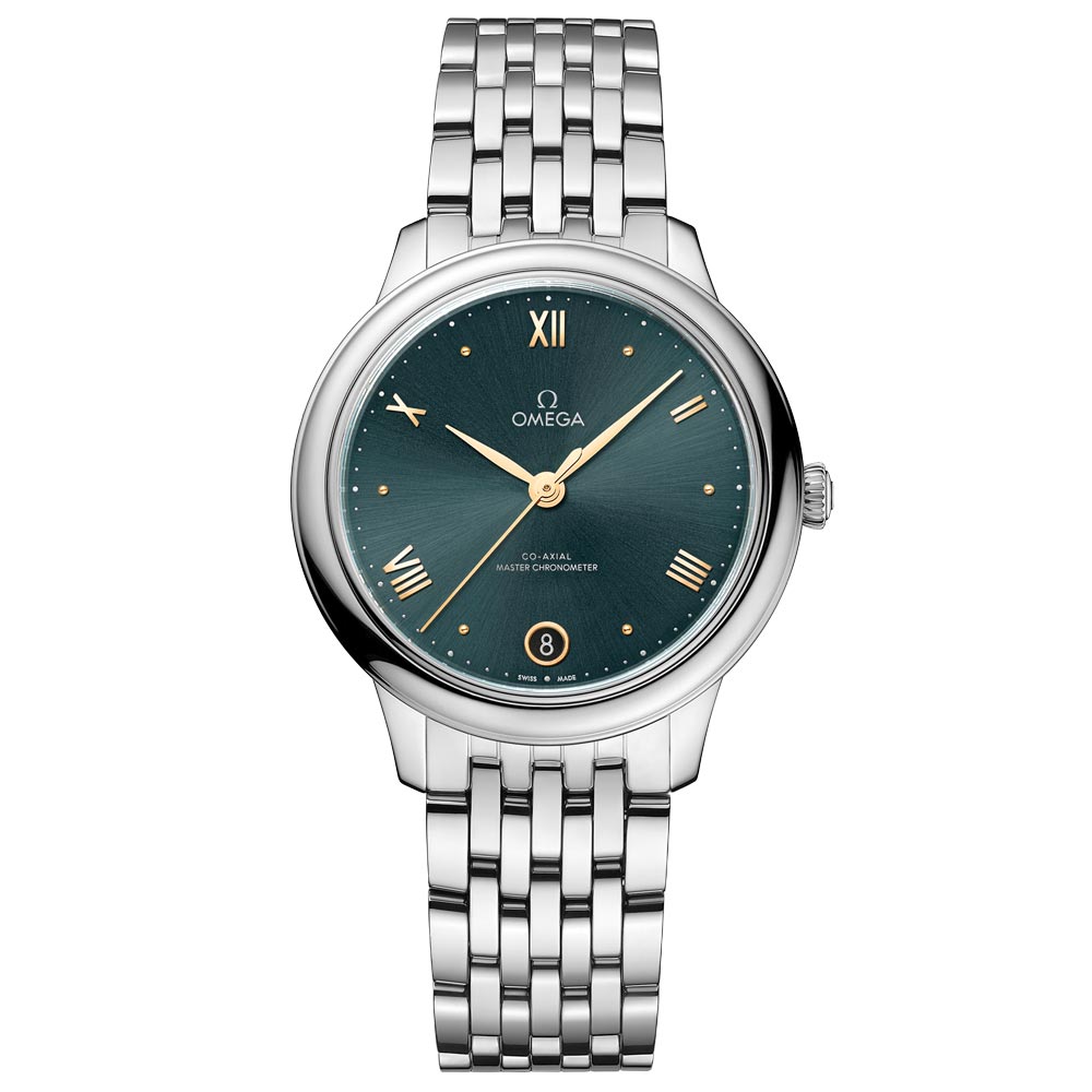 Since 1994, the OMEGA De Ville Prestige has been the epitome of timeless elegance. This 34mm stainless steel timepiece boasts a PVD pine green dial with yellow gold-plated hands and a sun-brushed finish for a sophisticated style. Cabochon indexes and Roman numerals mix for a classic look, while a date window and minute track add the perfect finishing touches. Certified as a Master Chronometer, the watch is powered by the OMEGA Master Co-Axial Calibre 8800 and presents a scratch-resistant sapphire crystal caseback.